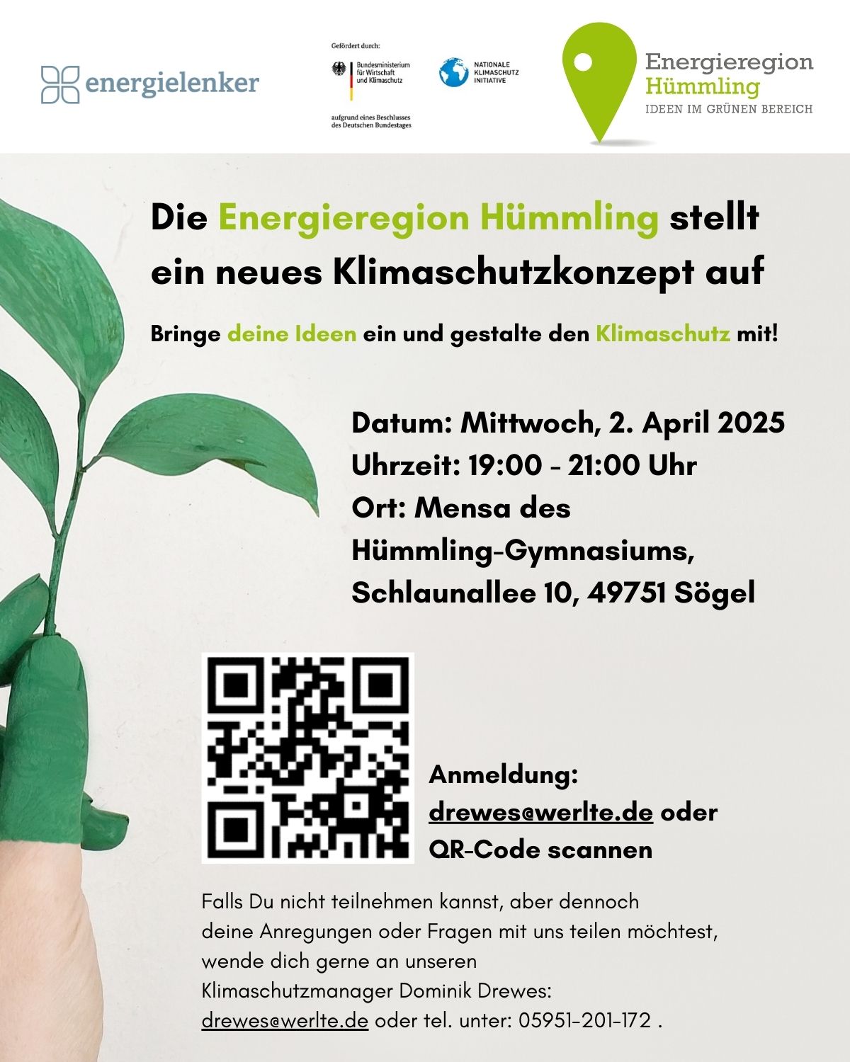 Für eine bessere Vorbereitung der Veranstaltung bitten wir um Anmeldung bei dem Klimaschutzmanager der Energieregion Hümmling Dominik Drewes: