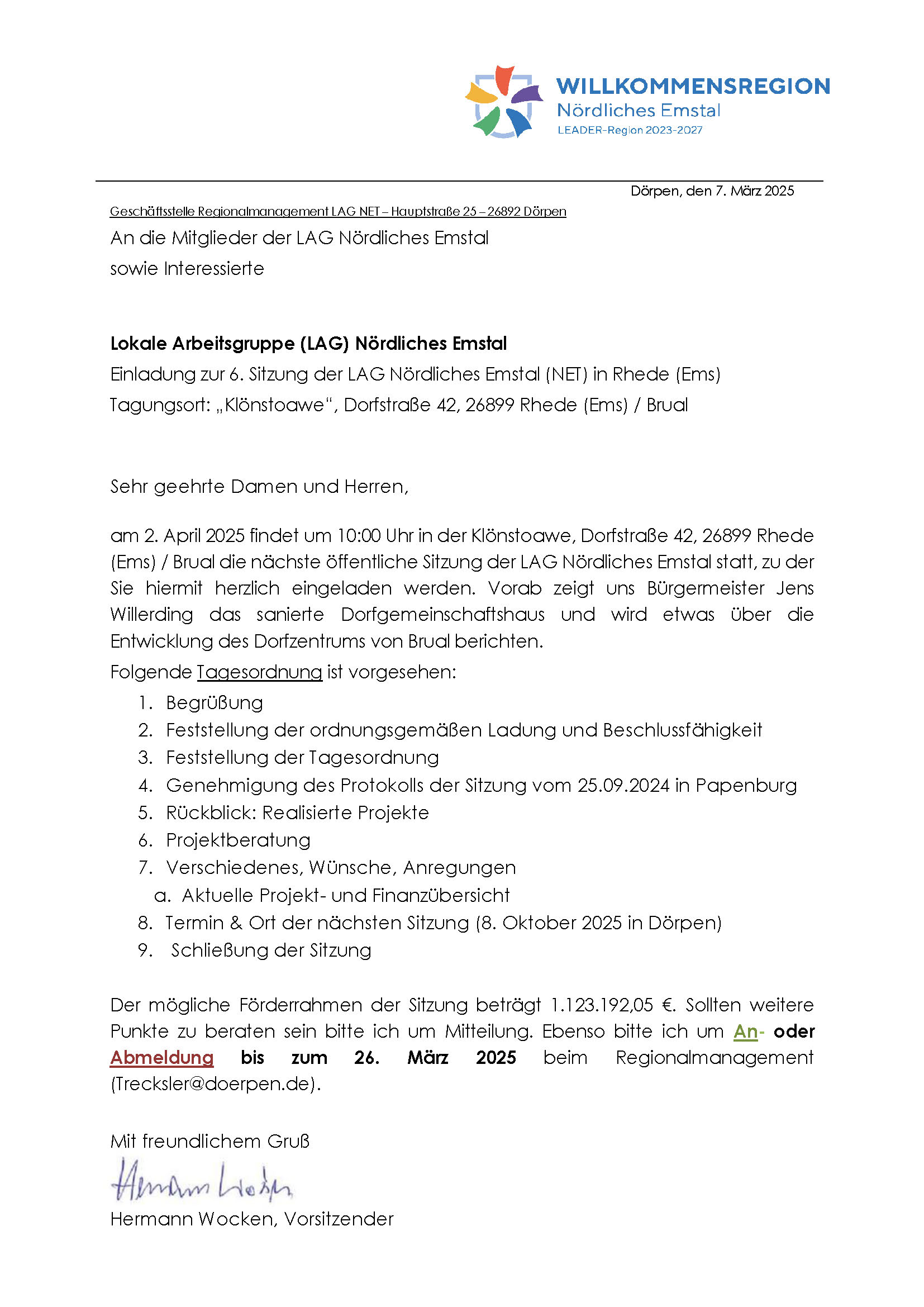 20250307 Einladungsschreiben 6. LAG Sitzung