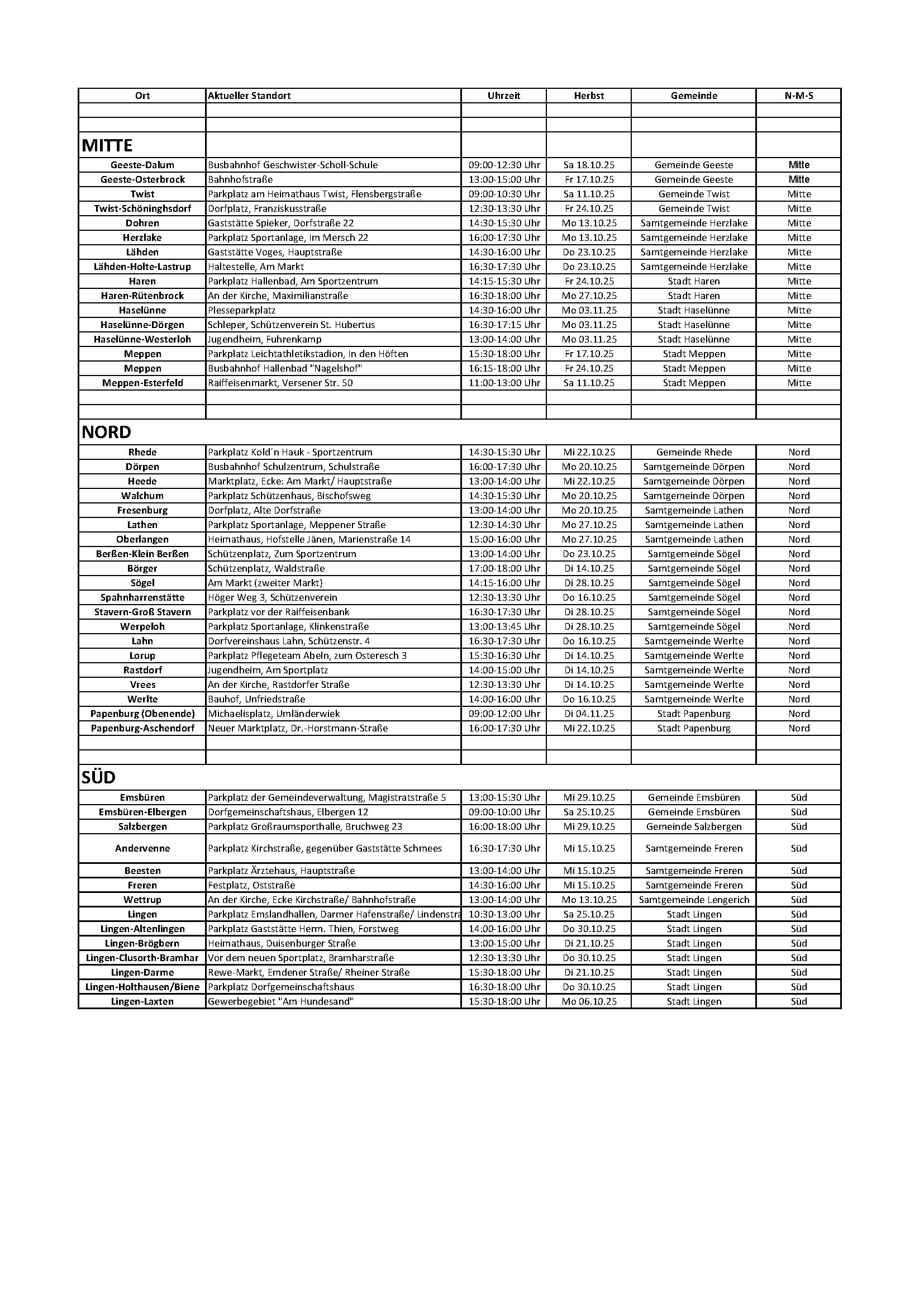 Neben der mobilen Schadstoffsammlung jeweils im Frühjahr und Herbst, stehen im Emsland ganzjährig das Schadstofflager in Haren-Wesuwe sowie stationäre Sammelstellen auf den Zentraldeponien zur Annahme von Schadstoffen zur Verfügung. Aus Kapazitätsgründen werden am Schadstoffmobil ausschließlich gefährliche Abfälle in haushaltsüblichen Mengen angenommen.