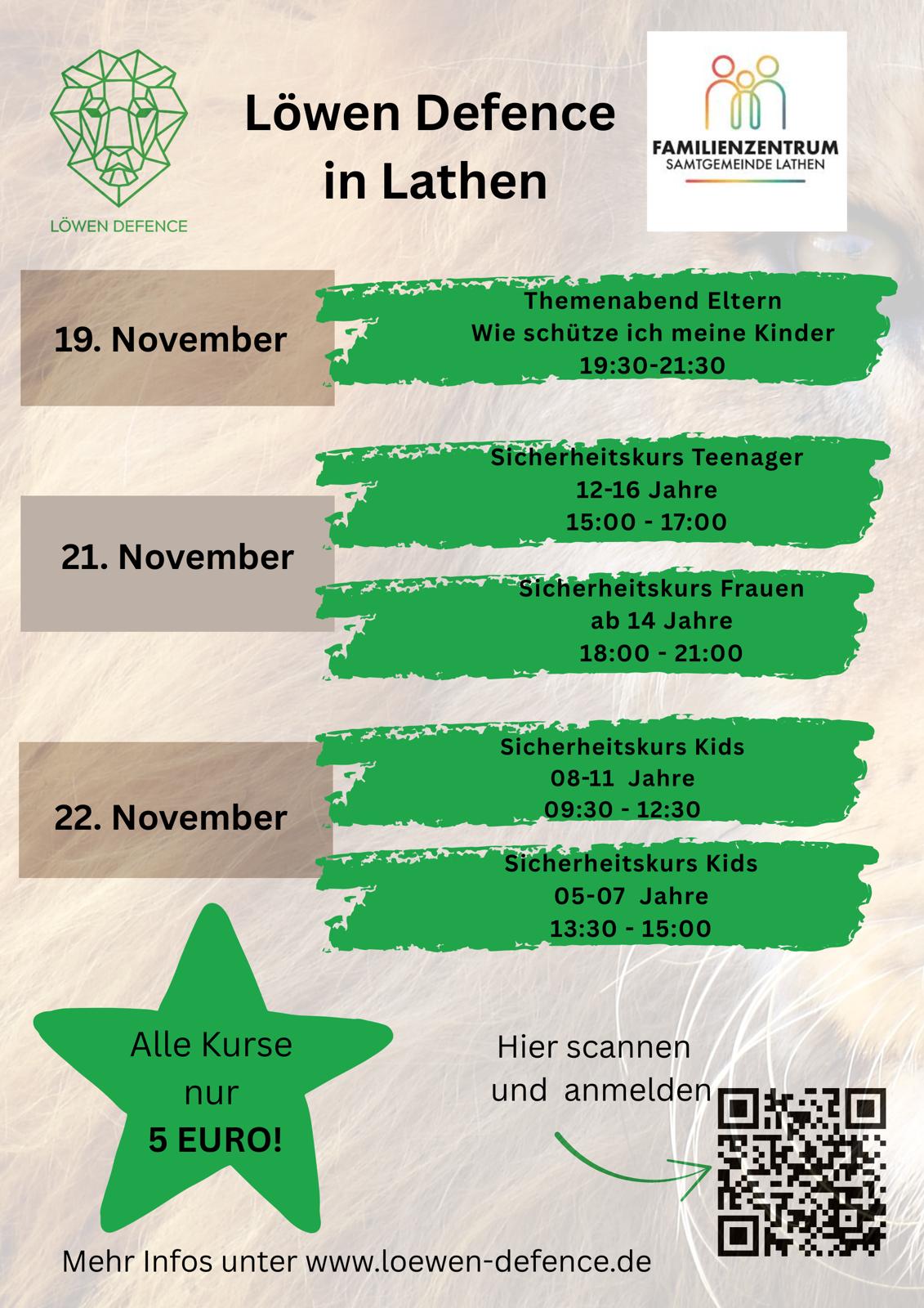 Hier finden Sie die Anmeldelinks für die Löwen Defence Kurse: