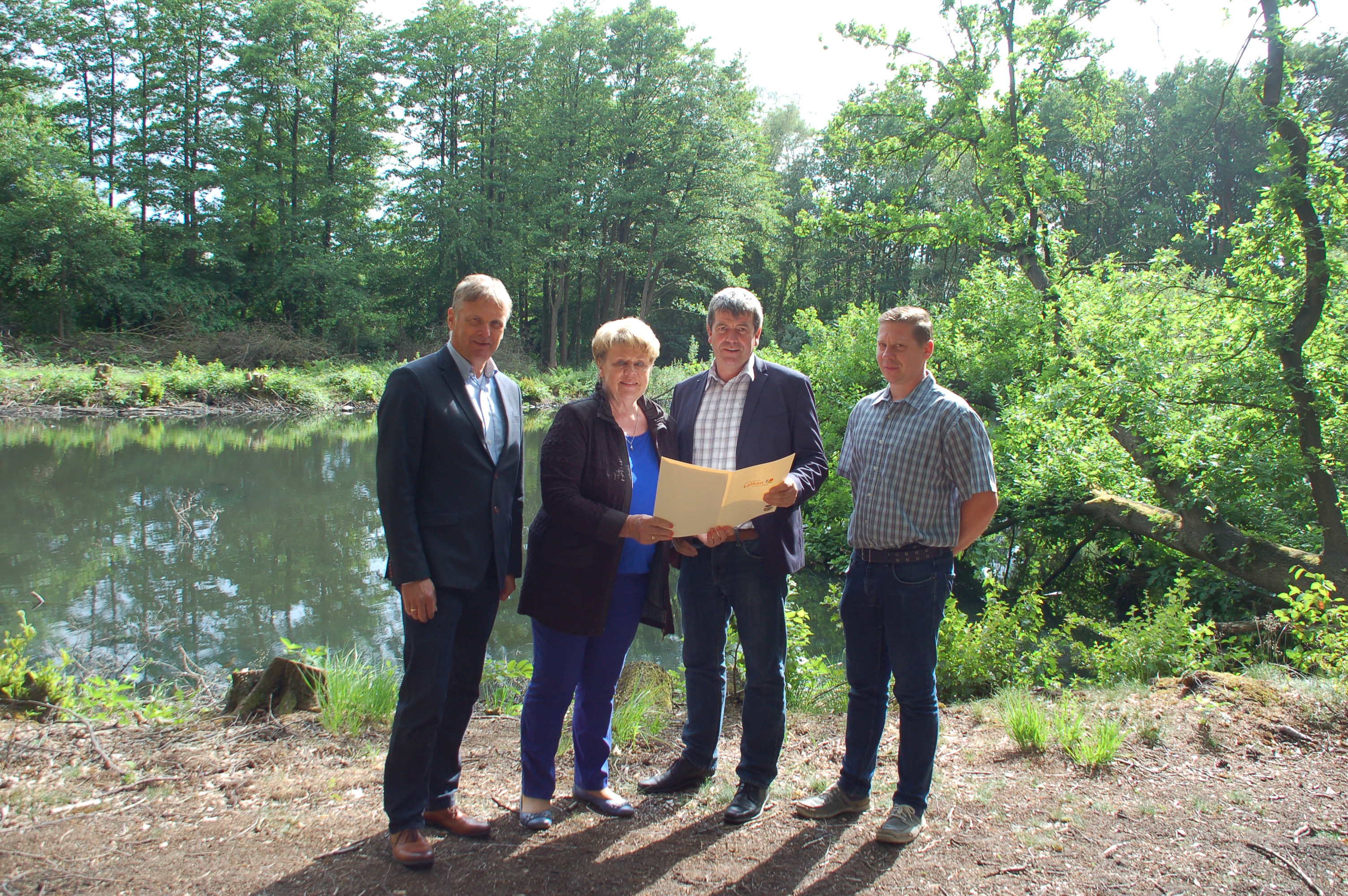 Der Pachtvertrag wurde nunmehr durch die Bürgermeisterin Luise Redenius-Heber sowie stellv. Gemeindedirektor Helmut Wilkens an Werner Kremer sowie Ralf Dickmann (Fischereiverein Lathen) übergeben.